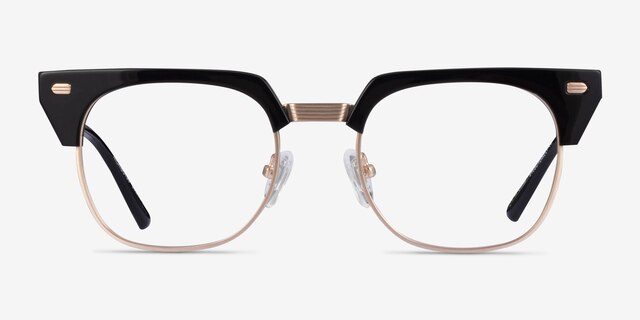 This Japanese-inspired look balances streamlined sophistication with standout style like no other. Nichibotsu features a distinct brow in black acetate, paired with sleek gold metal on the eyewire, nose bridge, and temples. Complete with classic rivets for added detail, and adjustable nose pads for a custom fit.