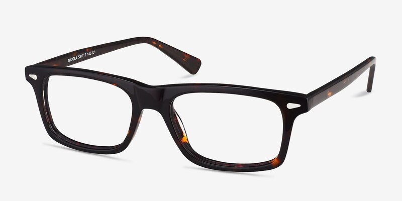 These tortoise eyeglasses are stylish and resourceful. This full plastic frame comes in a glossy honey flecked tortoiseshell finish with universally flattering rectangular shaped lenses and silver corner accents. The temples are slender and complement this classic look.