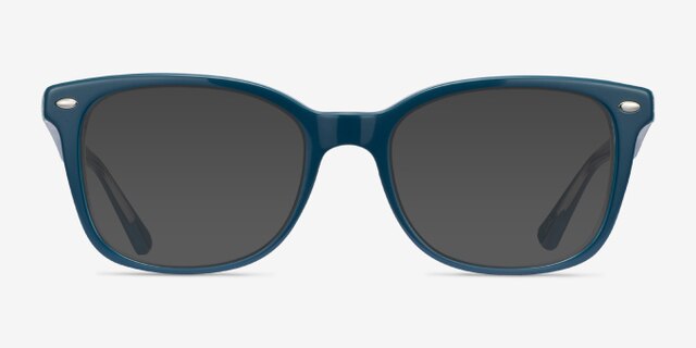 Solid and stylish, the classic silhouette of this Ray-Ban look is innovated with a lustrous, two-tone color palette. Blue acetate layered over a transparent base transforms these traditional square frames from oldschool standby to cutting-edge fashion. Perfect for giving their wearer a little bit of an edge.