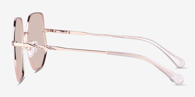 Say hello to Hustle, an oversized frame that’s a throwback to the unapologetic glamor of the 70s. Boasting bold, square frames, these rose gold beauties feature contrasting white temple tips for added flair. Crafted from durable metal, they come with spring hinges for comfort and adjustable nose pads for a custom fit.
